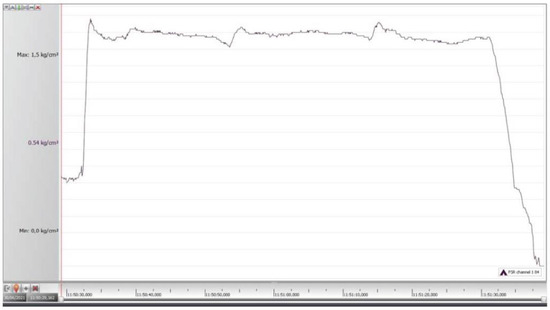 During each application, a variation (decline or increase) of 9% in thumb pressure occurred. An example of a thumb pressure/time graph is presented in Figure 5.