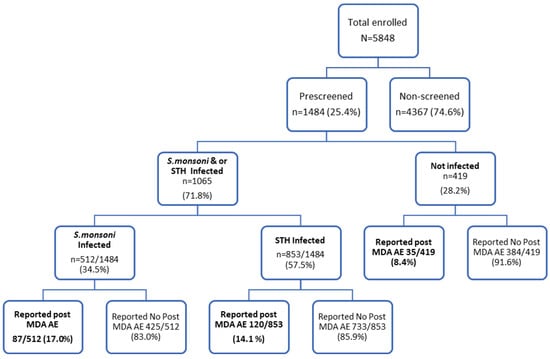 3.4. Adverse Events by S. mansoni and STH Infection Status