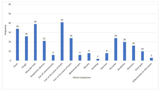 The frequency of clinical features among all sixty patients was summarized. All patients participating in this study exhibited moderate to mild symptoms. As shown in Figure 1, symptoms such as loss of sense of smell, muscular pain, and fever were the most common among the patients.