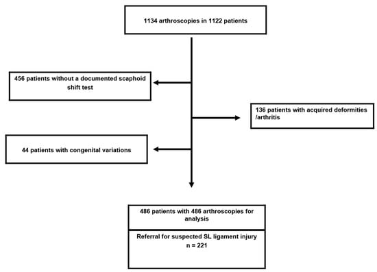 To the best of our knowledge, only three studies with smaller populations have been conducted, comparing clinical examinations against the arthroscopy findings and investigating the diagnostic value of the scaphoid shift tests in the detection of SLL injuries in particular [17,18,19].