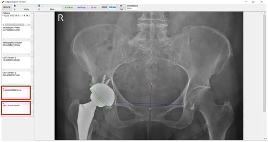 - Liaw, C.K.; Hou, S.M.; Yang, R.S.; Wu, T.Y.; Fuh, C.S. A new tool for measuring cup orientation in total hip arthroplasties from plain radiographs. Clin. Orthop. Relat. Res. 2006, 451, 134–139. [Google Scholar] [CrossRef] [PubMed]