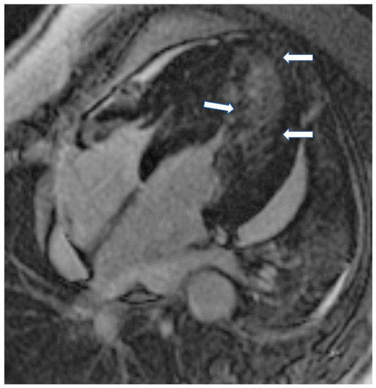 - Patel, A.R.; Kramer, C.M. Role of Cardiac Magnetic Resonance in the Diagnosis and Prognosis of Nonischemic Cardiomyopathy. JACC Cardiovasc. Imaging 2017, 10, 1180–1193. [Google Scholar] [CrossRef]
