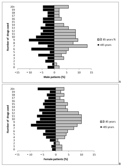 - Wastesson, J.W.; Minguez, A.C.; Fastbom, J.; Maioli, S.; Johnell, K. The composition of polypharmacy: A register-based study of Swedes aged 75 years and older. PLoS ONE 2018, 13, e0194892. [Google Scholar] [CrossRef] [PubMed]