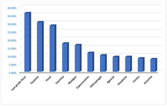 The most common routes of transmission are similar to those for other respiratory viruses, such as through aerosols or through contaminated objects []. COVID-19 manifests as an acute respiratory infection, although asymptomatic or barely symptomatic cases have been widely reported, especially in the initial stages of the disease. The most common symptoms are fever, asthenia and dry cough. Dyspnea usually begins on the fourth or fifth day. Another associated clinical picture is headache, myalgia, abdominal pain, dizziness, nausea, diarrhea, vomiting, anosmia and ageusia [].