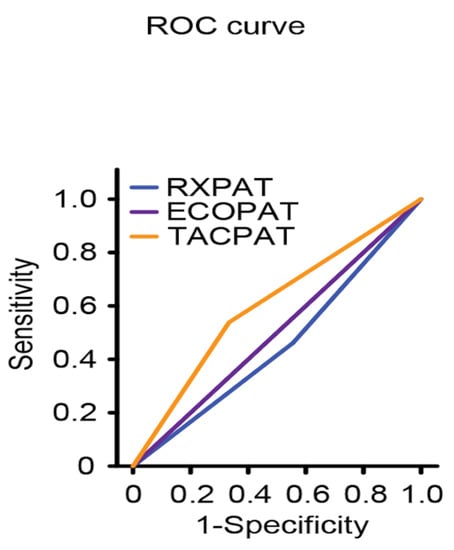 When analyzing the area under the curve for lung ultrasound with respect to X-rays and chest CT, the area under the curve for lung ultrasound presents was 0.5 (0.249–0.751), and that for X-rays was 0.453 (0.203–0.703); the results for both tests were lower than the CT, i.e., 0.603 (0.358–0.847), as shown in Figure 2.