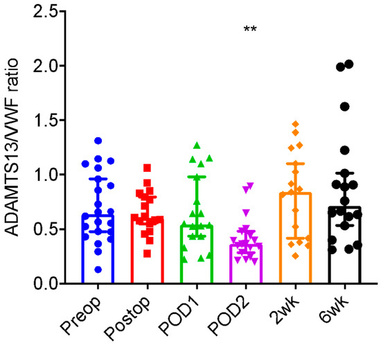 - Liu, L.; Ling, J.; Ma, Z.; Yuan, Q.; Pan, J.; Yang, H. Changes in von Willebrand factor and ADAMTS-13 in patients following arthroplasty. Mol. Med. Rep. 2015, 11, 3015–3020. [Google Scholar] [CrossRef]