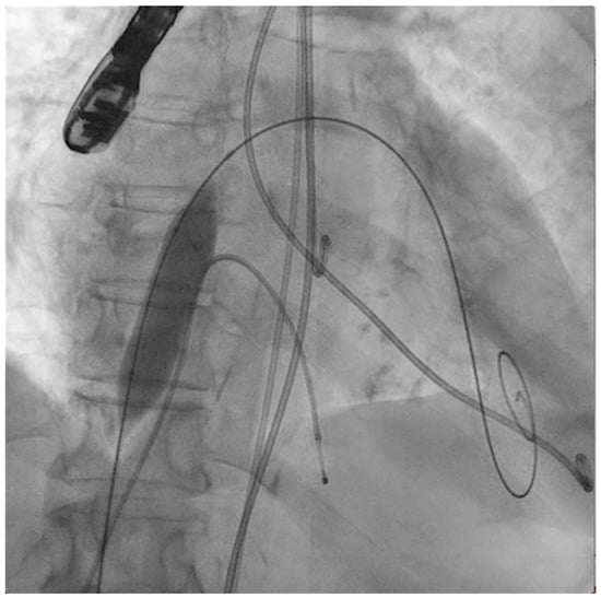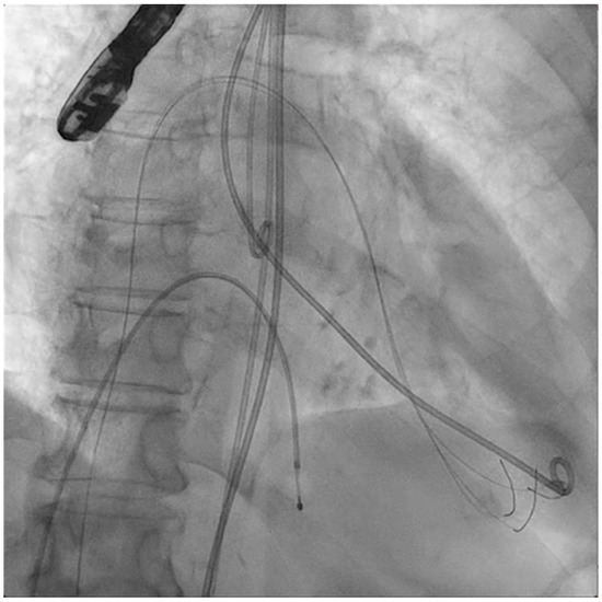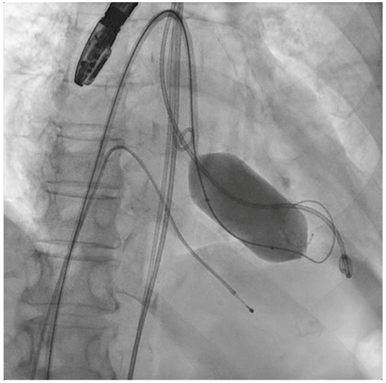 The procedure of applying shockwave pulses to the mitral valve is demanding and comes with a learning curve. Given its complexity and duration, general anesthesia is advised. An echography-guided vascular puncture (large-bore sheaths) allows for safe venous and arterial access. At least two femoral veins will be needed (one for transseptal puncture and PMC and the other for temporary right ventricular fast pacing). Transesophageal echocardiography (TEE) guidance is also recommended to attain a mid-posterior transseptal puncture. A high-support wire will retain left ventricular access with the help of a guiding catheter (i.e., multipurpose), which is mandatory to create an interatrial septostomy because of the size of the devices and sheaths to be advanced to the mitral valve (Figure 1).