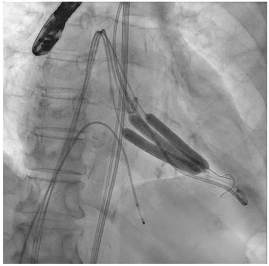 - Sanz-Ruiz, R.; González-Mansilla, A.; Rivera-Juárez, A.; Bermejo, J.; Fernández-Avilés, F. 1-Step Percutaneous Treatment of Heavily Calcified Left-Heart Valve Stenoses. JACC Cardiovasc. Interv. 2021, 14, e335–e337. [Google Scholar] [CrossRef]