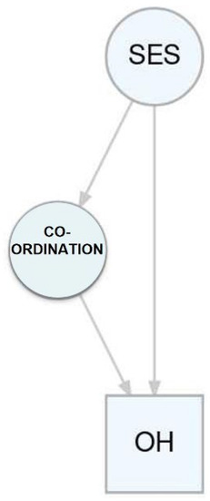 Mediation analysis of oral hygiene (OH), SES and coordinative abilities.