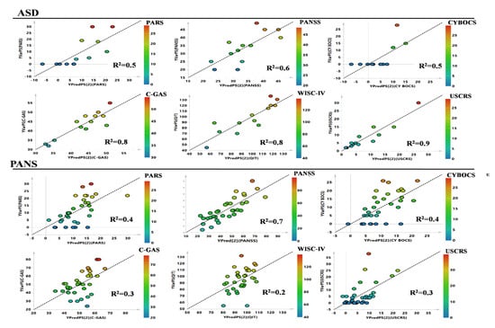 Finally, to test a possible linear correlation between the metabolic profile and psychodiagnostic scales (PARS, PANSS, CYBOCS, YGTSS, C-GAS, WISC-IV, and USCRS), PLS multivariate models were performed for PANS and ASD classes (Figure 5).