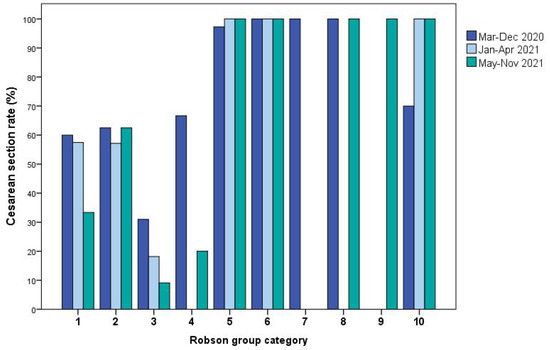 Sirico A, Carbone L, Avino L, Buonfantino C, De Angelis MC, Cresce MD, Fabozzi A, Improda FP, Legnante A, Riccardi C, et al. Trends in Caesarean Section Rate According to Robson Group Classification among Pregnant Women with SARS-CoV-2 Infection: A Single-Center Large Cohort Study in Italy. Journal of Clinical Medicine. 2022; 11(21):6503. https://doi.org/10.3390/jcm11216503