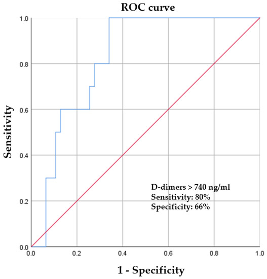 3.3. Correlations between Biological Markers and the Presence of Coronary Thrombosis in COVID-19-Positive Patients