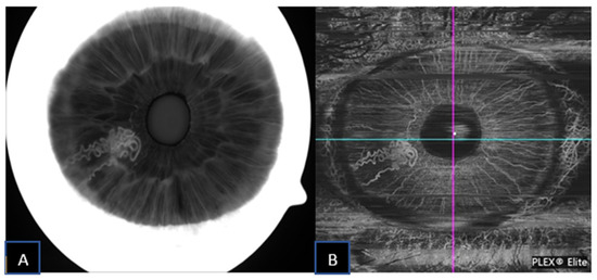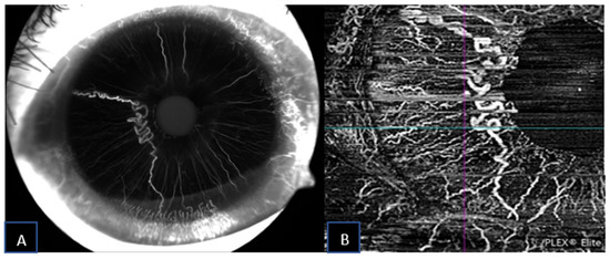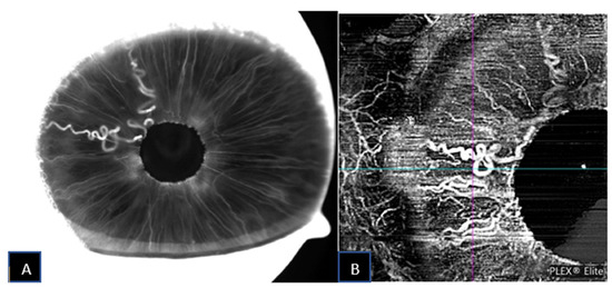 - Iris Arteriovenous Malformation—EyeWiki. Available online: https://eyewiki.aao.org/Iris_Arteriovenous_Malformation (accessed on 24 September 2022).