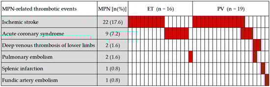 The following supporting information can be downloaded at: https://www.mdpi.com/article/10.3390/jcm11226615/s1, Table S1. Specific sites and complications of thrombotic events in MPN patients with TET2 mutation.