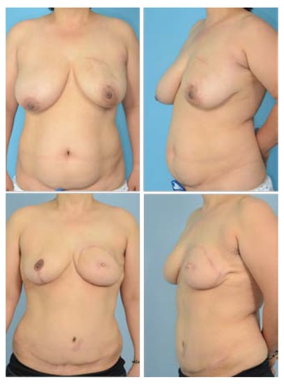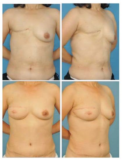 - Larson, D.L.; Yousif, N.J.; Sinha, R.K.; Latoni, J.; Korkos, T.G. A comparison of pedicled and free TRAM flaps for breast reconstruction in a single institution. Plast. Reconstr. Surg. 1999, 104, 674–680. [Google Scholar] [CrossRef] [PubMed]