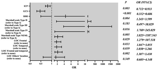 | Location of contusion (LOC) | Frontal | 1.788 | 1.047–3.055 | 0.033 |