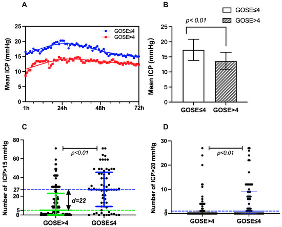 3.3. The Relationship between ICP Characteristics and Neurological Outcomes