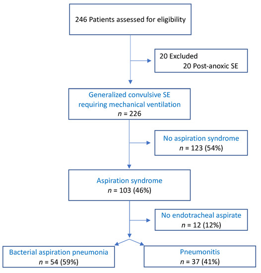 Tortuyaux R, Wallet F, Derambure P, Nseir S. Bacterial Aspiration Pneumonia in Generalized Convulsive Status Epilepticus: Incidence, Associated Factors and Outcome. Journal of Clinical Medicine. 2022; 11(22):6673. https://doi.org/10.3390/jcm11226673