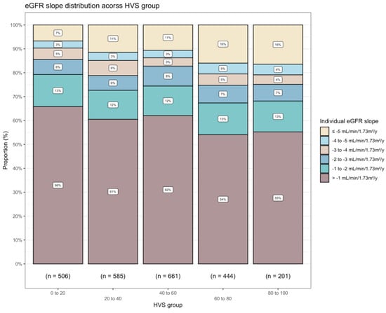 In addition, we estimated the differences across HVS categories in the mean eGFR slope throughout a given time, since previous studies proved a reduction in eGFR slope at 0.75 mL/min/1.73 m2 per year predicted an elevated risk of kidney failure [3].
