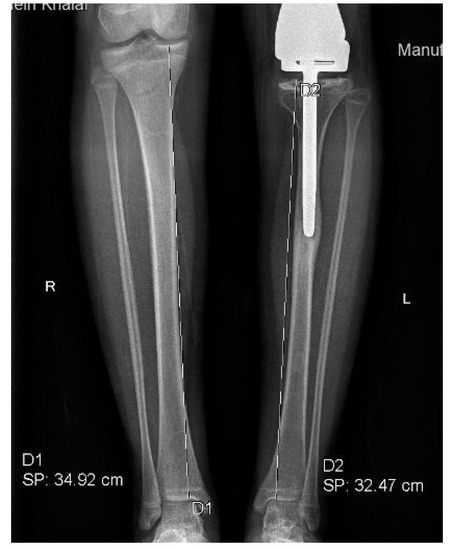 Tibial length discrepancy of 24.5 mm in one of our patients.