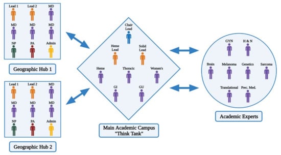 In practice, this has been implemented efficiently and with minimal disruption of both the academic site and the community practice physician’s schedules. We now have 3 regional COCDs that meet monthly and as needed whenever urgent COCDs are needed. We believe that the fluidity and structure of our multi-faceted team of experts have the potential to transform network practice interactions and traditional consultations into necessary functions for all our network site practices to provide as-needed, seamless, state-of-the-art academic inputs for precision care plans for patients. By only gathering the needed experts for each COCD, we optimize the demands on faculty time and have focused meetings to meet the specific needs identified by the network clinicians [71].