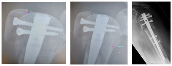 - Neer, C.S., 2nd. Displaced proximal humeral fractures. I. Classification and evaluation. J. Bone Joint Surg. Am. 1970, 52, 1077–1089. [Google Scholar] [CrossRef]
