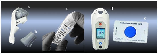 The Zalviso® system consists of a disposable dispenser tip (a) and dispenser cap (b); a cartridge of Sufentanil sublingual 15 mcg tablets in a disposable bar-coded cartridge (c); a reusable handheld controller (d) and an authorized access card (e).