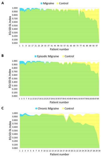 Our study aimed to assess the influence of migraine on the HRQoL of patients with EM or CM based on the EQ-5D-5L generic questionnaire. The HRQoL of migraine individuals was compared with a matched control coming from general population.