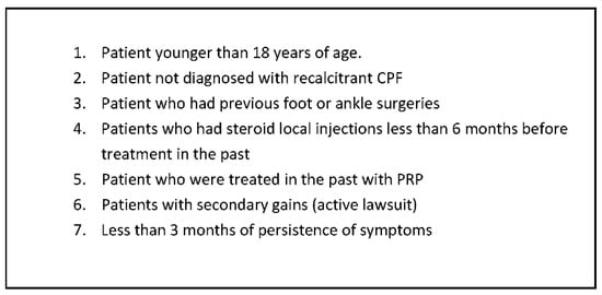 Exclusion criteria. CPF: chronic plantar fasciitis.