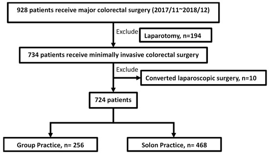 Group practice in this study refers to multiple physicians with single specialties in colorectal disease, including four attending surgeons.