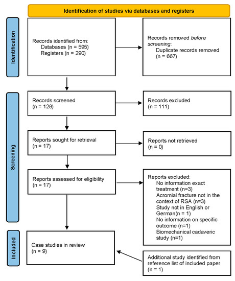Cassidy, J.T.; Paszicsnyek, A.; Ernstbrunner, L.; Ek, E.T. Acromial and Scapular Spine Fractures following Reverse Total Shoulder Arthroplasty—A Systematic Review of Fixation Constructs and Techniques. J. Clin. Med. 2022, 11, 7025. https://doi.org/10.3390/jcm11237025