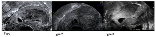 Initial ultrasound assessments were made by sonographers in a community early pregnancy unit. Low implantation with proximity to the CS scar and an empty uterine cavity and endocervical canal, prompted discussion at the local early pregnancy MDT. Subsequent assessment was then performed by a specialist gynaecology consultant trained in advanced early pregnancy and gynaecology ultrasound. During the specialist ultrasound assessment, the mean size of the GS and CRL were documented if present, and the presence of a yolk sac and/or amniotic sac were noted. In RPOC, the mean size was documented. The colour Doppler flow was described with a score between 1–4 [] with 1 representing no flow around the pregnancy, 2 minimal flow, 3 moderate flow and 4 significant vascularity. The residual myometrial thickness (RMT) was measured at the level of implantation. The degree of invasion was also described in relation to the uterine serosa. Retrospectively the cases were described as Type 1, 2 or 3 as per recent Delphi consensus (Figure 1) [].