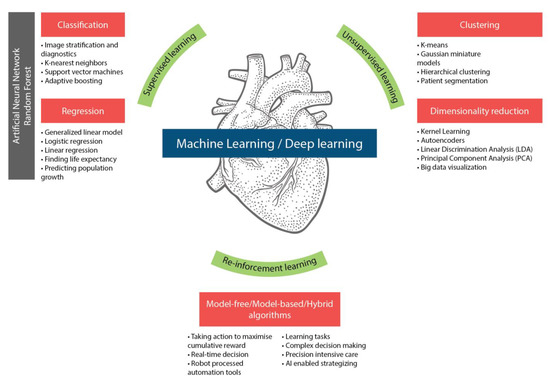 - Johnson, K.W.; Torres Soto, J.; Glicksberg, B.S.; Shameer, K.; Miotto, R.; Ali, M.; Ashley, E.; Dudley, J.T. Artificial Intelligence in Cardiology. J. Am. Coll. Cardiol. 2018, 71, 2668–2679. [Google Scholar] [CrossRef] [PubMed]