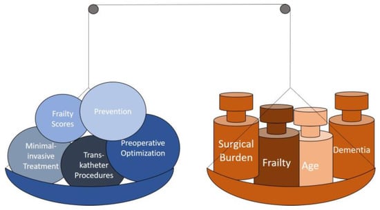 Nevertheless, it is time to consider old age and frailty not as such, but as a condition that can be assessed with reasonable accuracy and that can also be treated preoperatively or postoperatively or postinterventionally to improve the patient’s condition (Figure 1). The ultimate goal for the patients is easily defined: living at home, being mobile, requiring little nursing assistance, and having a good quality of life without requiring re-hospitalizations. The time for shrugging shoulders in the treatment of ageing patients is over; the time is ripe for clear strategies to define, assess, stratify, and treat the ageing patient. Some things have already been recognised, but much is still up in the air.