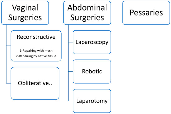 - Doaee, M.; Moradi-Lakeh, M.; Nourmohammadi, A.; Razavi-Ratki, S.K.; Nojomi, M. Management of pelvic organ prolapse and quality of life: A systematic review and meta-analysis. Int. Urogynecol. J. 2014, 25, 153–163. [Google Scholar] [CrossRef] [PubMed]