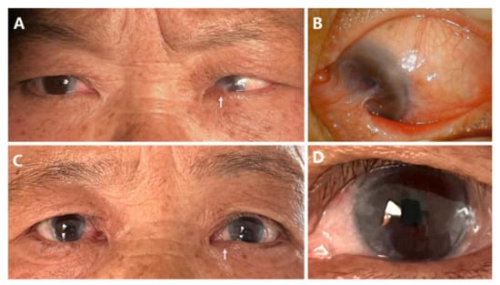 - Tsai, Y.Y.; Lin, J.M.; Shy, J.D. Acute scleral thinning after pterygium excision with intraoperative mitomycin C: A case report of scleral dellen after bare sclera technique and review of the literature. Cornea 2002, 21, 227–229. [Google Scholar] [CrossRef] [PubMed]
