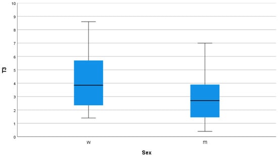 Boxplot over the total analyzed postoperative time and gender (w = women; m = men).