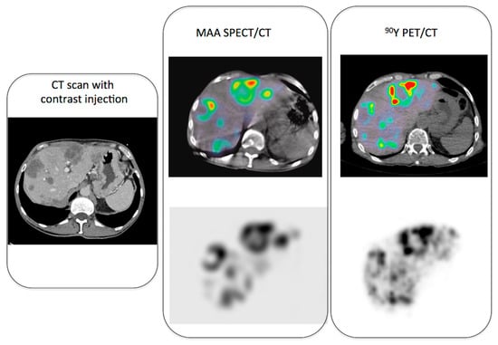 Pre-therapy MAA SPECT/CT/CT and post-therapy 90Y PET/CT absorbed doses are strongly correlated with tumor response and patient outcome (high tumor absorbed dose) or with liver toxicity (high healthy liver absorbed dose) [10,11,12,13].