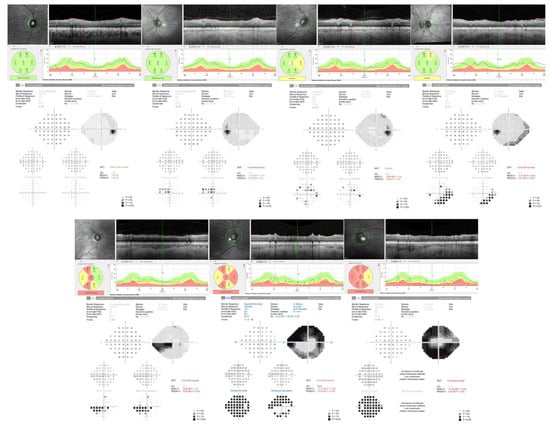 Visual field tests and pRNFL acquisitions images are shown in Figure 3.