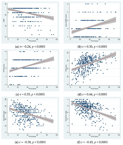 - Benkalfate, N.; Eschapasse, E.; Georges, T.; Leblanc, C.; Dirou, S.; Melscoet, L.; Chéné, A.L.; Horeau-Langlard, D.; Bry, C.; Chambellan, A.; et al. Evaluation of the Post-COVID-19 Functional Status (PCFS) Scale in a cohort of patients recovering from hypoxemic SARS-CoV-2 pneumonia. BMJ Open Respir. Res. 2022, 9, e001136. [Google Scholar] [CrossRef]
