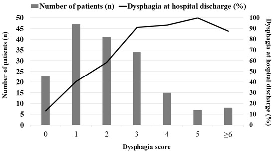 The number of patients for the dysphagia score and corresponding dysphagia rate at hospital discharge.