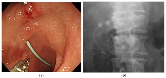 - Nakahara, K.; Michikawa, Y.; Sato, J.; Igarashi, Y.; Sekine, A.; Hashimoto, H.; Kobayashi, S.; Otsubo, T.; Itoh, F. Double-guidewire technique for endoscopic transpapillary gallbladder stenting. J. Hepato-Biliary-Pancreat. Sci. 2022, 29, e50–e51. [Google Scholar] [CrossRef] [PubMed]