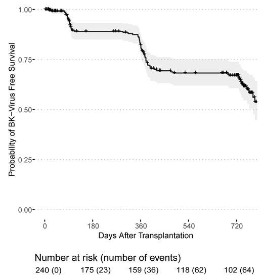 67. Strassl, R.; Doberer, K.; Rasoul-Rockenschaub, S.; Herkner, H.; Görzer, I.; Kläger, J.P.; Schmidt, R.; Haslacher, H.; Schiemann, M.; Eskandary, F.A.; et al. Torque Teno Virus for Risk Stratification of Acute Biopsy-Proven Alloreactivity in Kidney Transplant Recipients. J. Infect. Dis. 2019, 219, 1934–1939. [Google Scholar] [CrossRef] [PubMed]