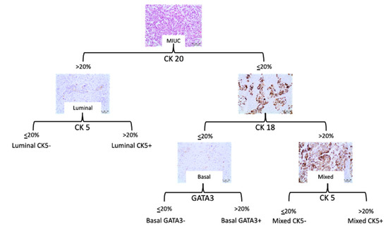 Chicago/Turabian StylePeña, Karla Beatríz, Francesc Riu, Josep Gumà, Francisca Martínez-Madueño, Maria José Miranda, Anna Vidal, Marc Grifoll, Joan Badia, Marta Rodriguez-Balada, and David Parada. 2022. "Immunohistochemical Algorithm for the Classification of Muscle-Invasive Urinary Bladder Carcinoma with Lymph Node Metastasis: An Institutional Study" Journal of Clinical Medicine 11, no. 24: 7430. https://doi.org/10.3390/jcm11247430