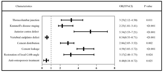 Risk factors of postoperative bone cement displacement in Kümmell’s disease.