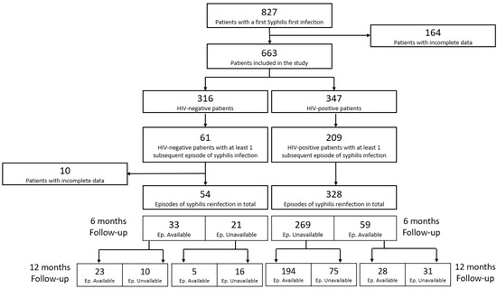 - Roth, J.A.; Franzeck, F.C.; Balakrishna, S.; Lautenschlager, S.; Thurnheer, M.C.; Trellu, L.T.; Cavassini, M.; Vernazza, P.; Bernasconi, E.; Braun, D.; et al. Repeated Syphilis Episodes in HIV-Infected Men Who Have Sex with Men: A Multicenter Prospective Cohort Study on Risk Factors and the Potential Role of Syphilis Immunity. Open Forum Infect. Dis. 2020, 7, ofaa019. [Google Scholar] [CrossRef] [PubMed]