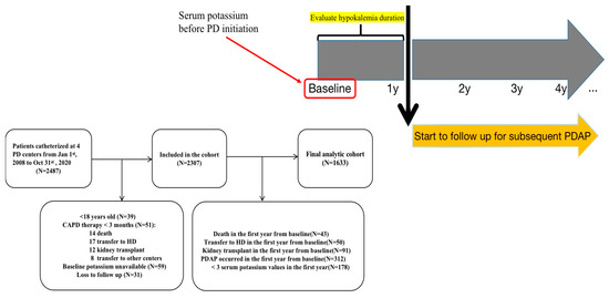 Huo, Z., Zhuo, Q., Zhong, S., Wang, F., Xie, C., Gong, N., Zhong, X., Yi, Z., Kong, Y., Liu, D., Dou, X., Wang, G., & Ai, J. (2022). Hypokalemia Duration in the First Year Associated with Subsequent Peritoneal Dialysis-Associated Peritonitis: A Multicenter Retrospective Cohort Study. Journal of Clinical Medicine, 11(24), 7518. https://doi.org/10.3390/jcm11247518