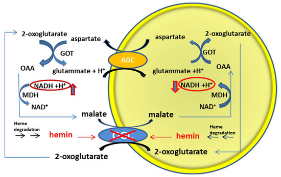 Miniero DV, Gambacorta N, Spagnoletta A, Tragni V, Loizzo S, Nicolotti O, Pierri CL, De Palma A. New Insights Regarding Hemin Inhibition of the Purified Rat Brain 2-Oxoglutarate Carrier and Relationships with Mitochondrial Dysfunction. Journal of Clinical Medicine. 2022; 11(24):7519. https://doi.org/10.3390/jcm11247519