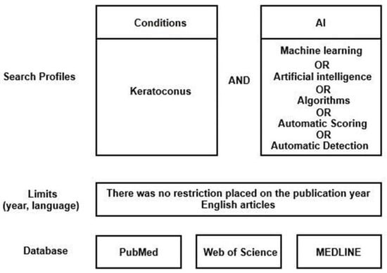 PubMed, Web of Science, and MEDLINE were interrogated using search strings pertaining to keratoconus and machine learning. Key words were used by search engine and designated filters according to PRISMA (Preferred Reporting Items for Systematic Reviews and Meta-Analyses) guidelines (Figure 1). The search string was ((keratoconus AND [artificial intelligence]) OR (keratoconus AND [machine learning]) OR (keratoconus AND algorithms) OR (keratoconus AND [automatic scoring]) OR (keratoconus AND [automatic detection])).