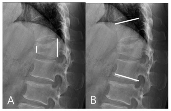 - Lee, K.Y.; Kim, M.-W.; Seok, S.Y.; Kim, D.R.; Im, C.S. The Relationship between Superior Disc-Endplate Complex Injury and Correction Loss in Young Adult Patients with Thoracolumbar Stable Burst Fracture. Clin. Orthop. Surg. 2017, 9, 465–471. [Google Scholar] [CrossRef] [PubMed]